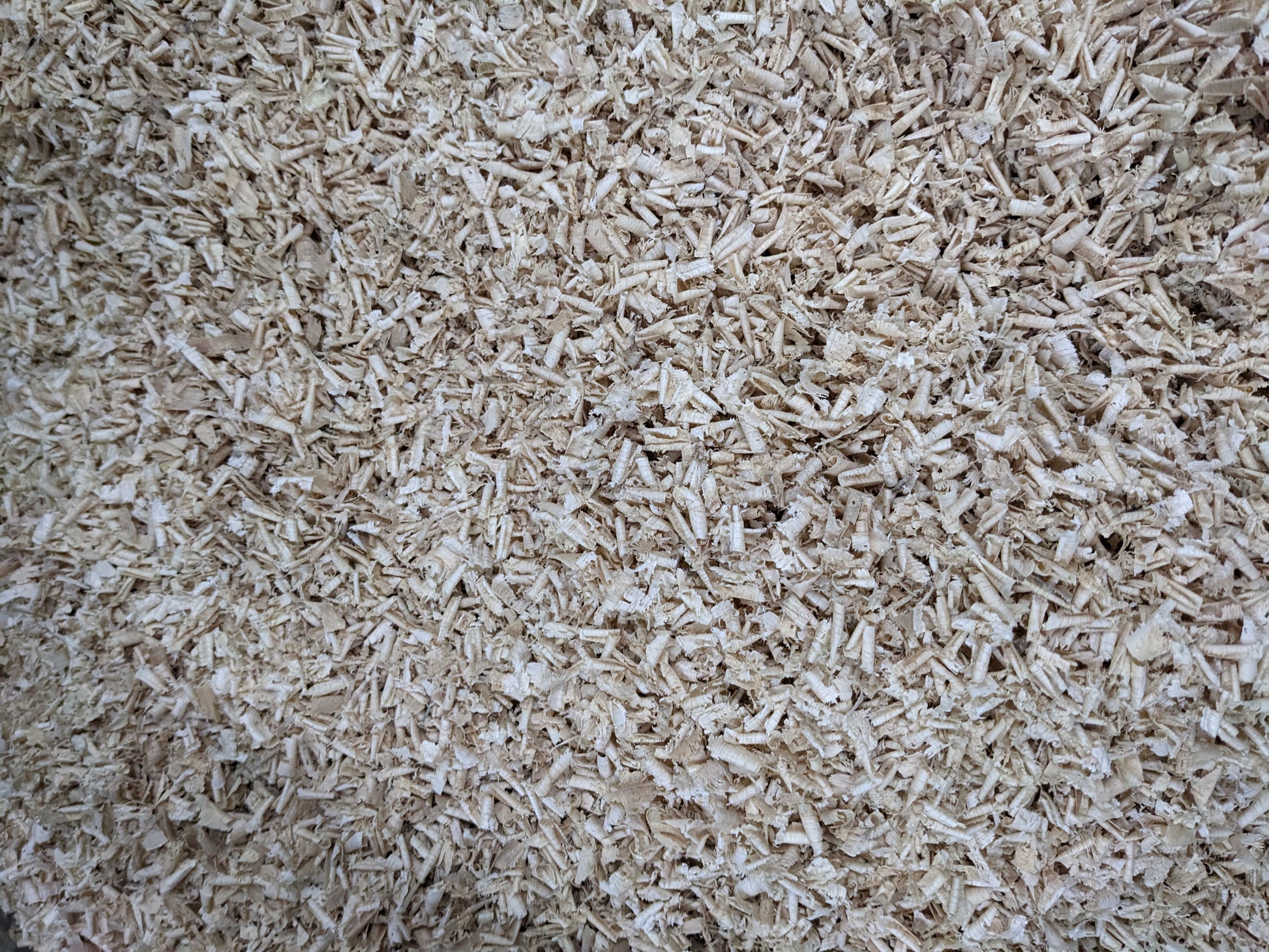 Hardwoods like oak or maple. Pine wood shavings consistent size. No black walnut. This product can be used in chicken coops, horse stalls, or garden beds to keep the weeds away and the animals clean. Sold in 30 gallon bags